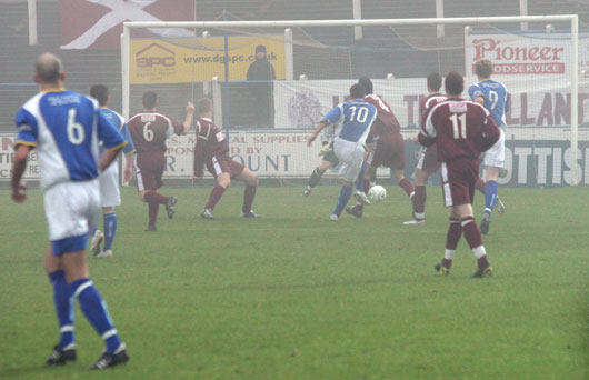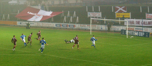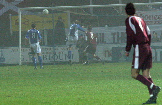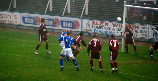 It didn't take too long for Queens to find a second as a deep Bob Harris corner to the back post found Jim Thomson who climbed above his marker to power a header down into the ground and past the keeper giving Logan little chance of making a save. Despite the two goal advantage Rose still posed a threat and it took two great tackles to clear danger as the West Lothian side strived to pull a goal back. The first tackle came from Bob Harris as he slid in to take the ball off the toe of Andrew Dick with just Jamie MacDonald to beat and then the second was from new boy Ryan McCann as got himself between two Rose players to slide the ball away on the edge of the six yard box. ![]() Captain Jim heads it in - From Sandy Robertson in the stand |