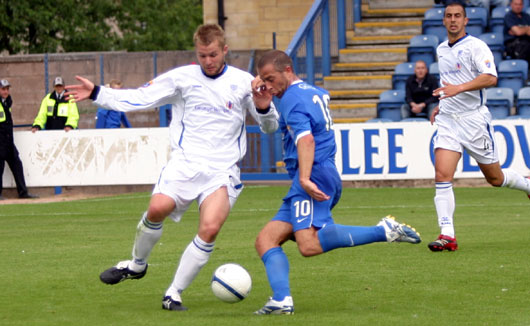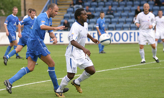 ![]() Jim Thomson keeps tabs on Jason Scotland |