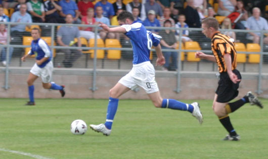 The first half was one way traffic with Queens cutting through the Annan defence pretty much at will. John O'Neill, Brian McLaughlin and Scott Robertson were revelling in the space afforded them and between them scored four goals - every one a cracker in the first forty five minutes. The first goal came from the head of John O'Neill who rose above the defence to bullet a Stephen Payne free-kick into the back of the net on fifteen minutes. Second goal came from Scott Robertson as he broke through the Annan defence and from half way kept his composure to run onto the 'keeper and slot the ball into the bottom corner for a super-cool finish. Number three was a simply superb volley from the edge of the box from John O'Neill which the keeper didn't even see as it passed him on the way back out and number four was a similar but more delicate curling effort from the same spot from Brian McLaughlin. In between goals three and four Brian Reid had another chalked off for a push on a defender as he rose above the home defence to nod a Willie Gibson free kick into the net.