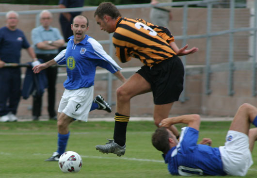 A surprise in the line up was to see former goalkeeper and twice released Stuart Robertson making an emergency comeback to cover for the injured Richie Barnard and youth 'keeper Darren Martin, a regular thing for when Queens meet Annan as the last encounter saw former 'keeper John Hillcoat recalled for the day. As it was Stuart did a superb job in goal and on the rare occasion that he was tested made the necessary saves. The line up was more experimental than anything we are likely to see start the season as the front line consisted of John O'Neill and Brian McLaughlin, the defence of youngster Gareth Campbell, Chris Carr, Brian Reid and Gary Wood, completing another piece in his one man side - left back. Midfield was missing a number of 'regulars' as Stephen Payne, Scott Robertson, Paul Burns and Willie Gibson helped to keep the average age of the side down. |