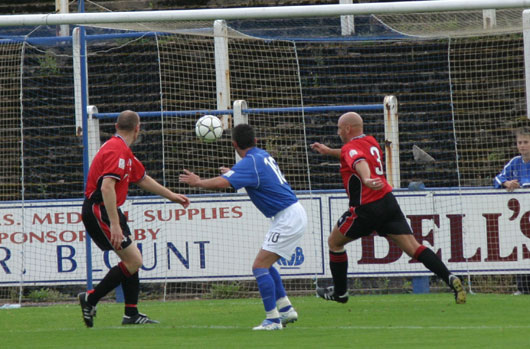 Queens controlled the match from beginning to end but failed to capitalise on their dominance. The lack of an understanding between the hard working David McNiven and Derek Lyle must be of concern as McNiven looks for the ball whilst Lyle waits for the ball. The only real chance in the opening twenty minutes was when Tommy English used his rarely utilised but never the less lethal striking power to send in an effort that Nelson had to tip over the bar for a Queens corner.
