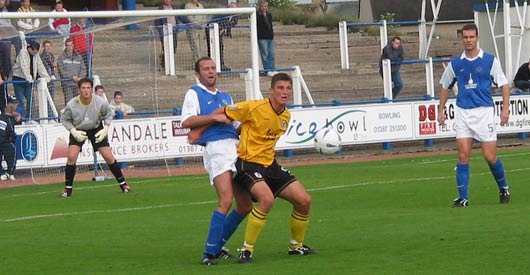 On forty minutes the goal scoring move was almost repeated as Derek Allan attempted to keep a Jim Thomson clearance in play but only succeeded in feeding Blackadder on the left, the young wingers effort this time was again to the near post and again to John Sutton. Sutton's effort though hit the wrong side of the post.