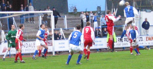 Moments later the substitute scored. Queens won a corner on the left, Eric Paton took the first effort which was cut out, the ball then found its' way back to Paton and his second cross was met by the stooping head of Gary Wood who notched up his third goal in four games for the Doonhamers.