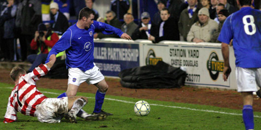 The second half started just as brightly for Queens with a Derek Lyle sweeping cross just eluding the boot of Tommy English at the far post. Hamilton though weren't finished as an attacking force and a neat Gilhaney run down the left almost allowed Tunbridge a header at the near post but Barnard just managed to beat the Aussie striker to the ball. |