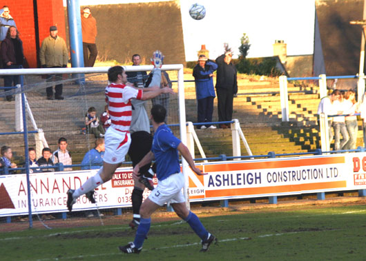 Moments later a superb move that culminated in Tommy English striking a shot goalward was only denied a goal by the leg of an Accies defender blocking at the last minute. The final action of the half saw Graham Weir shoot on the turn but again McEwan made the block and the half concluded all-square.