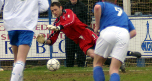 Then came a bit of luck for Queens as Kevin James headed the ball backwards toward Glennon, unfortunately for the big man Glennon was off his line as as soon as it left his head there was only one place it was going - straight into the back of the net 3-2 Queens. |