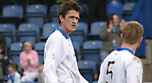 Ian McCall sent out a side with only two personnel changes form last time out. Steve Bowey dropped to the bench, Gary Wood moved over to cover the left side of midfield and more importantly as it would turn out to cover the dangerous Martin Hardie whilst Eric Paton was restored to the starting eleven. Also making his first start on his return was Sean O'Connor who displaced Derek Lyle, the 'Tan man' settling for a seat on the bench. The bench itself saw Sean Dillon's place go to Tommy English. Fortunately both sides had something to play for in this game, Queens scrapping for every point possible whilst St Johnstone still had a faint hope of catching St Mirren if they could win every game and the buddies lose all of theirs.. The result was a match that saw two sides determined to win and some good football mixed in amongst the effort. It was Queens that threatened first with Graham Weir shooting for goal from a Sean O'Connor knock down on ten minutes, former Carlisle United goalkeeper Matty Glennon saw the effort late and could only block the effort, however there was no other Queens forward close to the spilled ball and the danger was cleared. Stuart Lovell almost opened the scoring a few minutes later, fortunately though he was just off target or it would have been a spectacular headed own goal from a Goran Stanic cross from the left. |