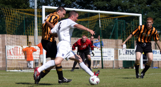 To the line up and Queens went with trialist Green in goals from Sheffield United, a back three marshalled by Scott MacKenzie and with both Kyle Bryson and Murray Henderson ably supporting him. Across the middle of the park were strung, Eric Paton, John Henry, Scott Robertson, Steven Sloan and Kieran McAnespie (a suprise trialist to everyone) whilst up front we had Derek Lyle and Andy Thomson. The bench had Corr, Whorlow, McColm, Jim Thomson, Mullen and Gibson awaiting a call.