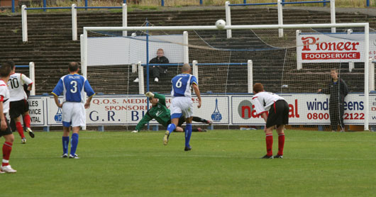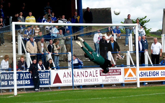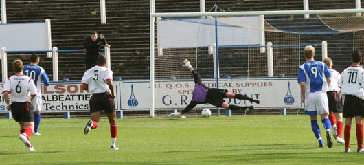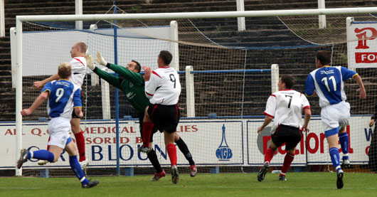 ![]() Jamie's beaten but luckily Masterton's strike crashed off the bar - Photo from Sandy Robertson |