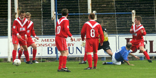 ![]() The winner, Robertson can only watch at Paul Burns slots home the decider |