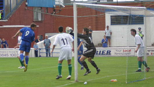 Brian McColligan then made way for Paul Burns on eighty minutes before Gary Caldwell almost won the award of mistake of the day as he managed to pass back under pressure form Stephen Payne. The free kick was played back but the well struck effort from Stuart Lovell was blocked away.