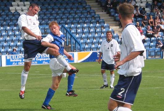 It was an all action start to the half and Derek Lyle almost made it two as he beat his marker in a race to a superbly swung in Joe McAlpine cross, the effort beat the 'keeper but also the post.