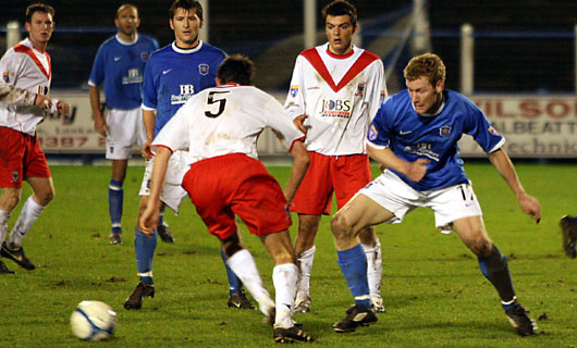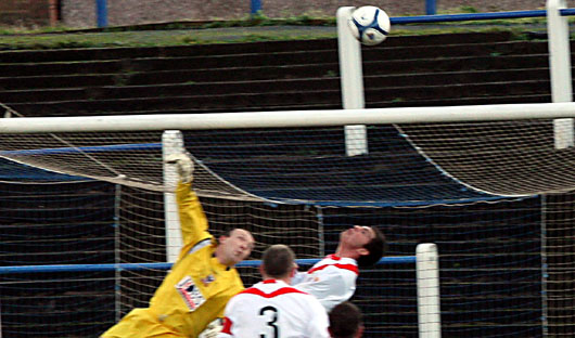 Craig Hinchcliffe then needed two attempts to gather a long range shot from Stephen McDougall on twenty minutes.