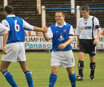 Derek Lyle had a chance to score against his old team mates half an hour into the half but Jim Thomson was having none of it and cleared off the line, Tan Man tried again as he returned the clearance with an overhead kick but it again was cleared and that was about the end of any action. Queens made two final substitutions with Stephen Payne and Paul Hilland coming on for David Bagan and Brian Reid respectively. On the hole it was a good match played competitively in the main and Queens fans will be pleased with the performances of the new boys on show. |