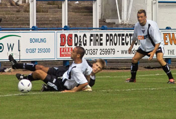 The half started disastrously though as within four minutes Queens conceded a goal and a disappointing one to lose at that as a high ball was lobbed over the out rushing Craig Samson by Billy Mehmet and only just made it into the net as Thomson and Reid raced back to clear. |