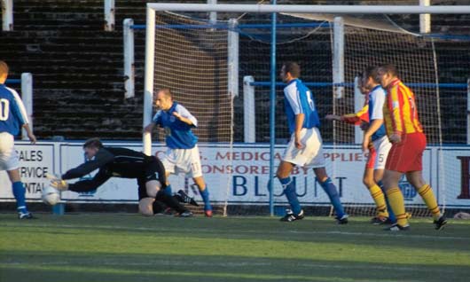 Steve Bowey was replaced by Paul Burns twenty minutes into the half and within a couple of minutes Paul McManus should have equalised for the visitors as a cross from the speedy Marc Mckenzie found him clear on Scott but he somehow managed to head past the post when it looked easier to score. At the other end Paul Burns was unlucky as he charged in at a tight angle to steer the ball back across goal from a Brian McColligan cross. Further changes were made as the game headed towards its conclusion with David McNiven replaced by Chris Armstrong and Eric Paton by Chris Scott.