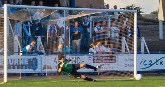 The game itself took some time to get going indeed the first action of any note was a cut-back from Bowser headed for the inrushing David Bagan in the middle of the visitors penalty box that saw the midfielder being pulled down by a Rovers defender and a penalty kick awarded. Both Tommy English and David Bagan 'discussed' who was taking the penalty for a minute or two before captain Bowser stepped in and let the goal hungry striker do the necessary as he despatched the ball to the far right hand corner of the net giving Fahay in the Rovers goal no chance.