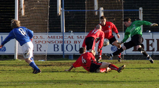 A series of superb saves from veteran goalkeeper Craig Nelson kept the visitors goal intact this afternoon and not to be outdone Colin Scott had to look lively on a couple of occasions too. It was 'as you were' with the team lines with only John O'Neill replacing Brian McLaughlin in the starting eleven and McLaughlin replacing Scott Robertson on the bench.
