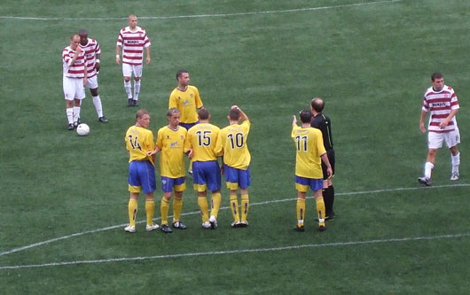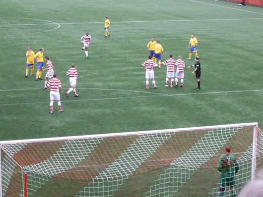 Gordon Chisholm didn't have his selection problems to seek in the build up to this one. Jim Lauchlan was still suspended, Jim Thomson and Jamie Adams, still out and joined by Sean O'Connor on the injured list and Liam Atkin had failed to win a contract. So it was a pieced together back four with Neil Scally joining Andy Aitken in the middle of the back four and Robert Harris coming in at full back, allowing Jamie McQuilken to play on the left side of a five man midfield which saw Steve Tosh attempting to get forward in support of the lone striker, David Bingham. Stephen Dobbie and Brian Gilmour had to be content with places on the bench alongside Grindley, Robertson and Mole.