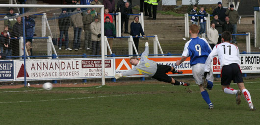 With Queens still pressing Derek Lyle had another great chance as he flicked a header from a David Craig cross downwards onto the goal line only to see Hill managing to stop it as it headed towards the net.