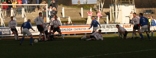 The second half started with Queens very purposeful and almost increasing the lead within the opening few minutes as Derek Lyle sent Bowser free with a superb flick with the outside of his boot and Bowser returned the pass as he sent the ball into the middle of the box for Lyle to run in on, unfortunately though Del didn't connect cleanly and the danger looked to have been cleared, although the eagle eyed referee had seen the controlled pass-back to Hill in the Falkirk goal and rightly awarded Queens an indirect free kick about ten yards from the line. It was desperate defending for the next thirty seconds from Falkirk as first the Queens free-kick smashed off the wall, then it was returned back again and cleared away before it fell to Bowser who also managed to find a defensive body part before the ball eventually made it out of the penalty box.