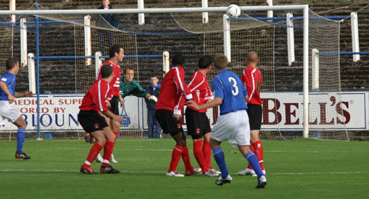 Just after the half-hour mark it was 2-0 to the visitors, this time a corner from the left was not cleared as Murray and Thomson challenged, the ball fell to Kevin Gray who hammered it home through a ruck of players from twelve yards. And three minutes later a Jim Thomson fresh air slice at the ball was fortunate to find Richie Barnard immediately in its line as the defence looked at its shakiest this pre-season. The first half ended and you could say that we were never really in it.