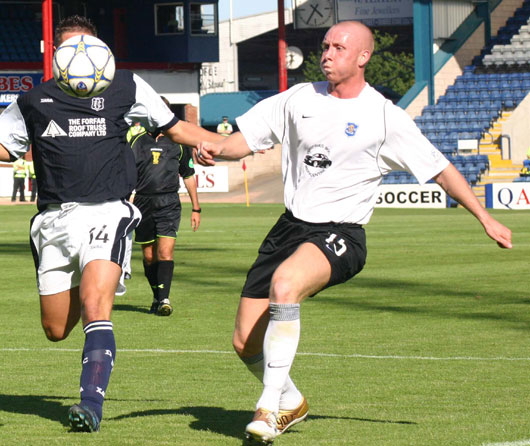 This always looked to be the hardest of the early season fixtures on paper and so it proved on a bright sunny day in the land of jute, jam and journalism. Injury to Stephen Payne meant one change from the side that drew with Brechin last weekend. Back from suspension came Gary Wood at right back with Eric Paton moving forward to right midfield, his third different position in three league games. The home side put out a strong looking side, most of whom were in the SPL last season.