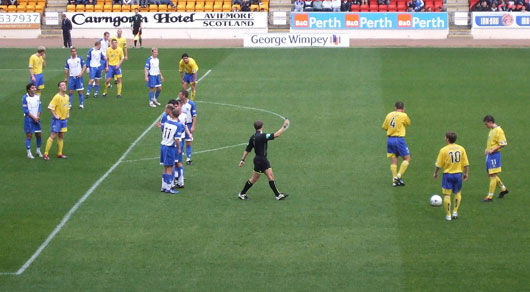 Gordon Chisholm patched together a team to face St Johnstone with most of his pre-match doubts eventually declaring fit, even if there was some concern over some of them. There was no Steve Tosh nor Neil McFarlane but Sean O'Connor started despite having had knee surgery 12 days earlier and Eric Paton also returned from injury. New signing David Nixon, on loan from Motherwell, took over the problem left centre back role alongside captain Jim Thomson whilst Brian Gilmour and John O'Neill stepped up from the subs bench against Dunfermline to take starting shirts. Messrs Aitken, Burns, Bingham and Dobbie made up the bench along with goalkeeper Stephen Grindlay. Owen Coyle too though had his problems with long term absentees Kevin James, Martin Hardie and Steven Milne unavailable for a Perth side on a run of eight matches unbeaten.