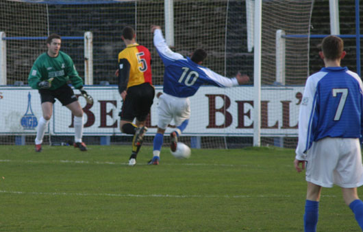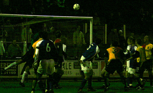 ![]() Lyle is beaten to the ball by Madaschi |