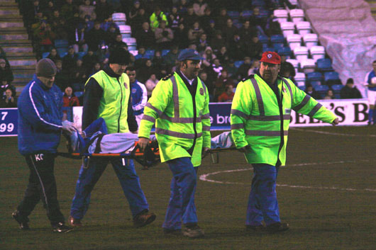 ![]() Burnsey is stretchered off |