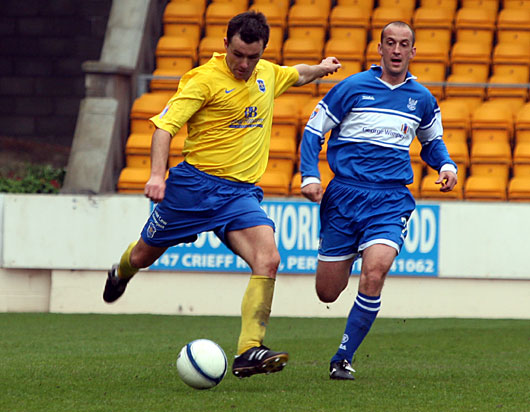 Ian McCall made two changes to the side that drew with Livingston last week. Andy Barrowman returned on the right of midfield in place of John O'Neill and, more surprisingly, Steve Tosh was declared fit and preferred to Stevie Murray on the left side. The home side were without inspirational skipper Kevin James who failed a fitness test and also the suspended Allan McManus but Simon Mensing returned from suspension to fill in at the back.
