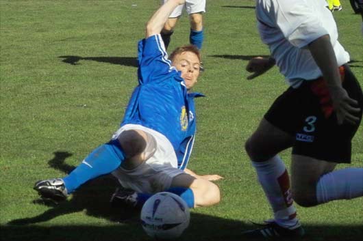 ![]() David Bagan takes the ball from McPherson |