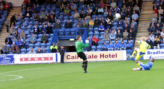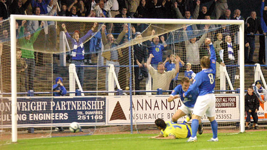 Both sides had put in a good shift in the first half and Queens had certainly not looked out of place alongside their SPL opponents. The second half saw Queens start most impressively with a goal in the opening minutes as a long Neil Scally throw was nodded on by Murray Henderson and fell to Sean O'Connor, the big striker had two go's at finishing but finish he did as the ball was eventually bundled over the line and the possibility of a 'cup shock' sprung into people's minds. |