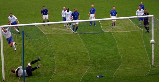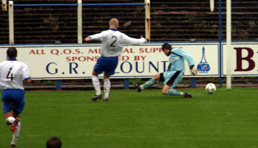 As the sides switched around after the break there were no changes, however the ineffectual Willie Gibson was replaced after only a few minutes of the half with trialist Dimitri Pronovyeh, then a third substitution as Stephen Payne replaced Scott Robertson and moved wide right with Paul Burns coming inside. In between the substitutions Eric Paton had a twenty five yard effort hat was deflected over the bar for a corner. Sheerin scored his second of the afternoon soon after as he collected the ball in tons of space on the left and looked for a shooting opportunity. He found one and shot, forcing a great save from Colin Scott but the ball fell back to him and his second effort beat Scott but looked to be covered all the way by Stuart Hill but the big Cumbrian only managed a fresh air swipe at the ball as it skewed into the back of the net to finish the match as a contest. |