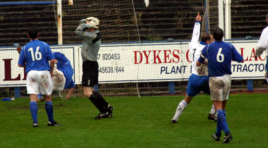 Queens lined up with an almost identical team to last week but with Steve Bowey returning and Stephen Payne making way with Paul Burns moving across to the right wing. The first Saints goal came just after official kick off time and came after the second corner in a row when Kevin James was allowed a free header at the back of the six yard box from a deep corner that he headed back in for Steven Milne to twist and shoot past Scott. |
