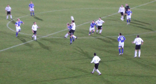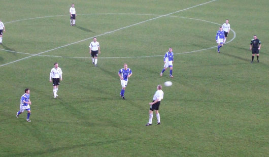 With three minutes of the half remaining O'Connor's attempt to burst in on goal was denied by superb defending from Danny Murphy and then a minute later super link up play on the edge of the box saw Burns released to slide a great ball along the six yard box but Stevie Tosh couldn't quite reach it to knock into an empty net. |