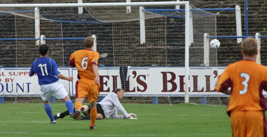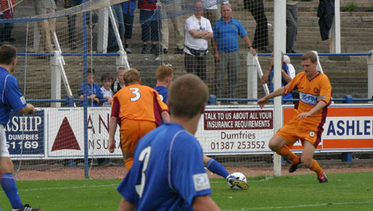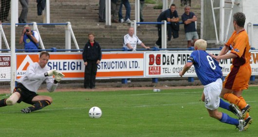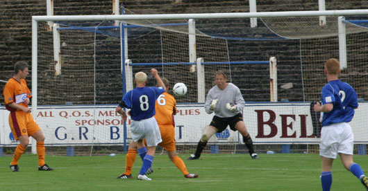 The game started out quite quietly and there was very little to report as both sides cancelled themselves out in the middle of the park. It all changed with the sending off of Clarkson in twenty minutes however as Queens exploited their superior numbers to great effect and opened the scoring just a few minutes later. The ever alert David McNiven picked up a ball on the edge of the Motherwell box and strode forward before lashing the ball under the out-rushing Gordon Marshall. A minute later and an English whipped in cross ball was well held by Marshall again as he beat the Queens forwards to cut out the cross.