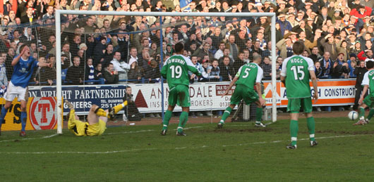 Ian McCall made the first of his two changes in the sixty fifth minute as he gave Sean O'Connor a well deserved rest and introduce Andy Barrowman, then five minutes later he swapped John O'Neill for Graham Weir with Barrowman dropping into O'Neill's right midfield slot and Weir partnering Dobbie upfront. |
