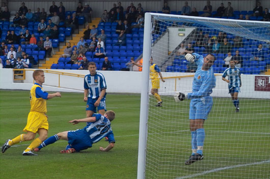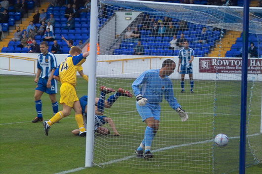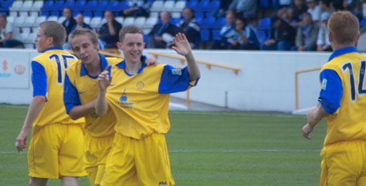 Chester City welcomed Queens as the first Scottish side to have played at the new Deva Stadium which must be a model stadium with its combination of terracing and seating areas to please everyone. And coming off the back of two wins against Walsall and Cardiff City they must have felt that it would be they who would be sending us homeward to think again. The first half saw Queens looking a little slow and much of the action took place in the visitors half as the front pairing of McNiven and Payne looked uncomfortable with Payne looking to work on the left more than getting forward. At the back Colin Scott again looked on top form, apart from a moment in the tenth minute when he and Brian Reid failed to communicate allowing Michael Bridge to capitalise and nod the ball into the unguarded net. Queens though were playing some good passing football but with only David McNiven working as a striker there was little outlet for all the good possession that the midfield enjoyed. As the half drew to a close Colin Scott had to be down smartly to push away an effort from a very tight angle as Bridge beat Jim Thomson down the line and challenged Scott at the post. Half time saw two changes - Paul Burns for David Bagan and Gary Wood for Stephen Payne. However as has happened in the past two friendlies we gave away a goal very shortly into the half. Ben Davies won the ball on the outside of the box and without a defender closing him down he struck an unstoppable effort into the top right hand corner of the goal giving Colin Scott no chance and seemingly putting the match beyond Queens. |