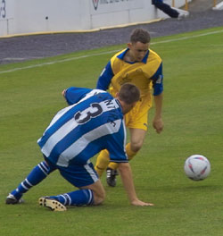![]() Skinned again Queens had different ideas though and the character of the side was again greatly in evidence as they began to make an impression on the home defence and in front of the sizable travelling support. No more so than down the right hand side where Paul Burns was tormenting Kevin McIntyre, it was McIntyre who made a cynical challenge on Burnsey that lead to a free kick on the right. The ball was played deep to Brian Reid on the far side of the box and the big man put in a superb ball back across that Gary Wood who did what we know he can as he rose powerfully to meet the cross and bullet the ball past Brown in the home goal.