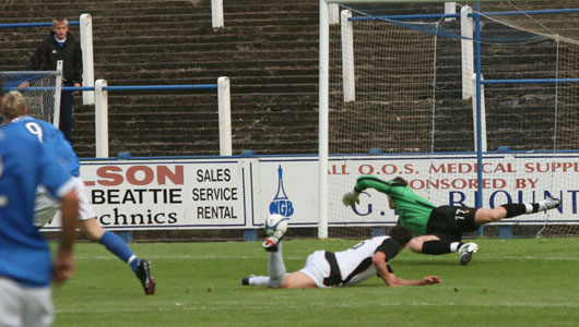 On seventy minutes Queens deservedly broke the deadlock as Eric Paton picked up a corner on the right and fired a ball into the box that Sean O'Connor got the slightest of touches on to divert the ball past Mathieson and into the net to give Queens a 1-0 lead. |