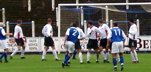 Disaster for the visitors and delight for the homesters as Halliwell failed to control a pass-back, Alex Burke demonstrated why the 'keeper is a 'keeper and nicked the ball off of him before stroking it home from an acute angle to the 'keepers acute embarrassment.