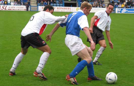 On fifteen minutes Sean O'Connor was hauled down on the edge of the box as he was almost one-on-one with Halliwell, Eric Paton and Paul Talbot lined up the free-kick to the right of centre and as some expected the left-footed Talbot to strike, Eric Paton smashed the ball through the wall, past Halliwell and into the far corner of the goal to open the scoring.