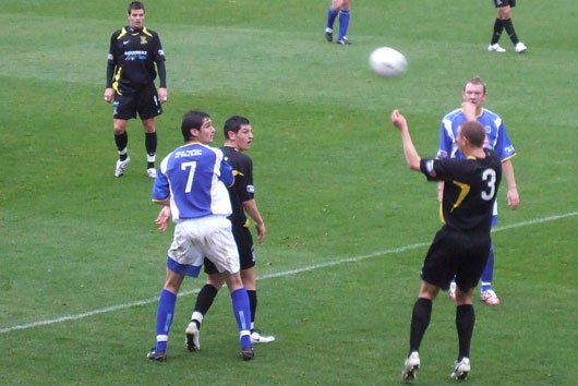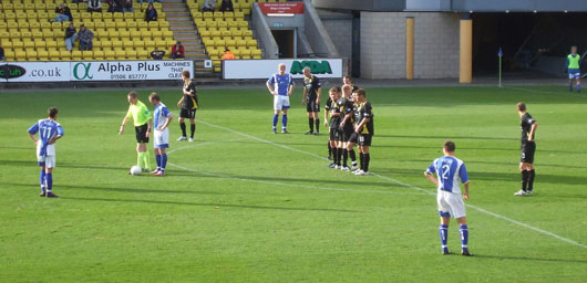 ![]() Harris and Tosh line up a free kick |