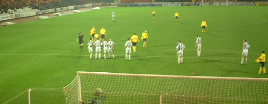 ![]() Queens line up a free kick |