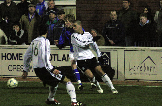 At the end of the ninety minutes both sides would have felt that they could have won the game, Queens having more of the match in terms of possession particularly in the first half and having two glorious chances, one an effort by Gary Wood that he could only mis-hit with only the keeper to beat and one in the second half from Stuart Lovell that took a wicked deflection and ended up crashing off the bar. Whilst at the other end Dee's number 9 Ferguson had clear sight of goal but could shoot over the bar and substitute Deasley watched as his turn and shot was brilliantly saved by Colin Scott.