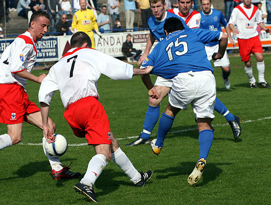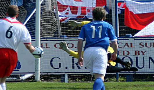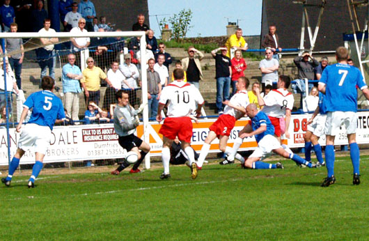 ![]() The first goal is knocked in - Photograph from Sandy Robertson |