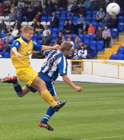 Both goals came from excellent free-kicks from sponsors man of the match Stephen Payne and were netted superbly by Gary Wood, one with his head and the other with his right foot. Manager Iain Scott was happy that the fans had a win to celebrate in the final home match. Said Scotty, "They've been great all season so that win was for them. We started slowly and gave the ball away cheaply but once the two goals went in we were very comfortable "Our two goals came from set pieces from almost identical positions. They were great deliveries from Stephen Payne and Gary Wood finished off well. "We played Gary up front and he hardly scored a goal, then we play him at full back and he nets two. You can never tell in football". Asked about Derek Lyle's injury he added, "Del's okay, it's nothing serious". Bill Goldie |
