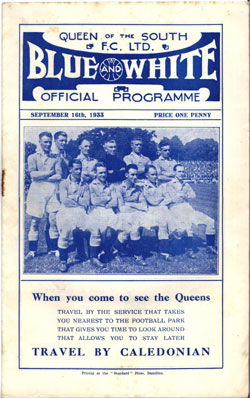 Amongst the many hundreds of individual Queen of the South related items that are in the collection, there are some that are particularly valuable and extremely rare. The main interest and most popular collectable items are programmes, some of the more notable are shown below, you can click on the images to open up a large picture of the front pages. Unfortunately these programmes are not for sale, however if you have any of these programmes for sale we would like to hear from you.