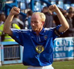 Iain Scott was a happy man but a bit relieved at the final whistle. He commented, "The lads showed a lot of character out there today after that controversial penalty decision which lead to their goal, they came out fighting in the second half and Willie's goal was a tremendous strike. The conditions were far from ideal for football and Montrose are not a bad team who fought hard. I'm just glad we won though and here's hoping now for a good draw in the next round." Said goal hero Willie Gibson "I don't score many goals but I dedicate this one to two of my team mates, my pal Stuart Hill, who was making his debut in the cup today and Jim Thomson who was making his 200th appearance. I've to sit beside Jim all the home in the bus tonight and he would have been a pain in the butt if we hadn't won. But seriously, I'm really thrilled, I caught Eric Paton's cross perfectly and it looked good from the second it left my boot." Another relieved man was Chairman Davie Rae who admitted, "That was a very long ninety minutes and to say I was glad to hear the final whistle is an understatement. It was a competitive match and Montrose were quick and sharp but I feel we just deserved our victory. I only hope we're lucky when the draw for the next round is made on Monday night." Bill Goldie |